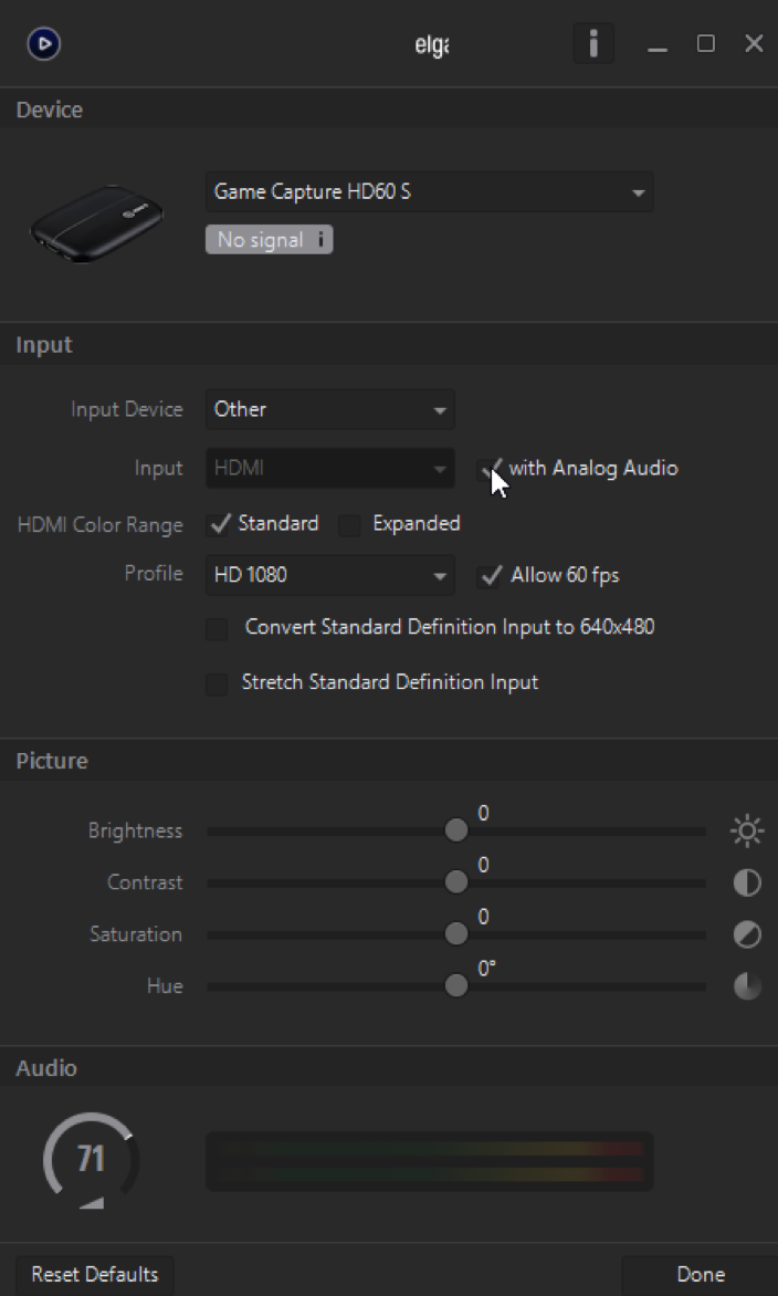 - Desktop audio - set as Speakers Elgato Sound Card - Elgato - Which is the video capture device and the audio output mode is set to Capture audio only I hope this helps. And many more apps. Enable in the Device Setting the option With analog audio.